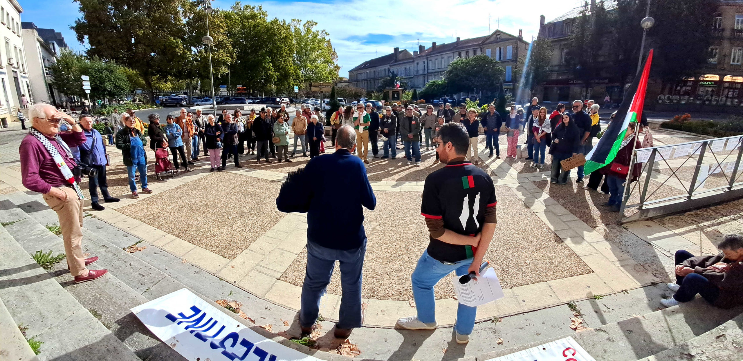 Tout juste cinq jours après la reconnaissance de l’Etat de Palestine par la France, le Comité Dordogne Palestine appelait à deux rassemblements afin d’exhorter les présidents français et allemand à plus d’engagements de leur part pour que cesse le génocide palestinien. « C’est un pas important mais un pas insuffisant qui a été fait », clame depuis Périgueux Violette Folgado, présidente du collectif, s’agissant de la reconnaissance de l’Etat de Palestine par la France, « il faut arriver au cessez-le-feu, à la fin de la colonisation, à la libération des otages israéliens mais aussi des prisonniers politiques ». A Bergerac, c’est l’ancien maire de la ville et membre de Dordogne-Palestine, Daniel Garrigue qui, à travers la lecture d’une lettre adressée au président de la République, insiste sur « l’urgence d’agir pour arrêter le Premier ministre israélien et ses alliés d’extrême droite ». Pour le comité, il est indispensable que « toute forme de coopération ou de livraison en matière d’armement soient interrompues. Il faut que de façon urgente, l’accord commercial qui lie l’Union Européenne à Israël soit suspendu ». Une autre lettre adressée cette fois au Chancelier allemand encourage ce dernier, à son tour, à reconnaitre l’Etat de Palestine. « Nous vous demandons de franchir ce pas qui grandirait l’Allemagne et qui montrerait la détermination de l’Europe. Nous sommes convaincus que vous avez l’humanité et la force nécessaire pour prendre cette décision ».